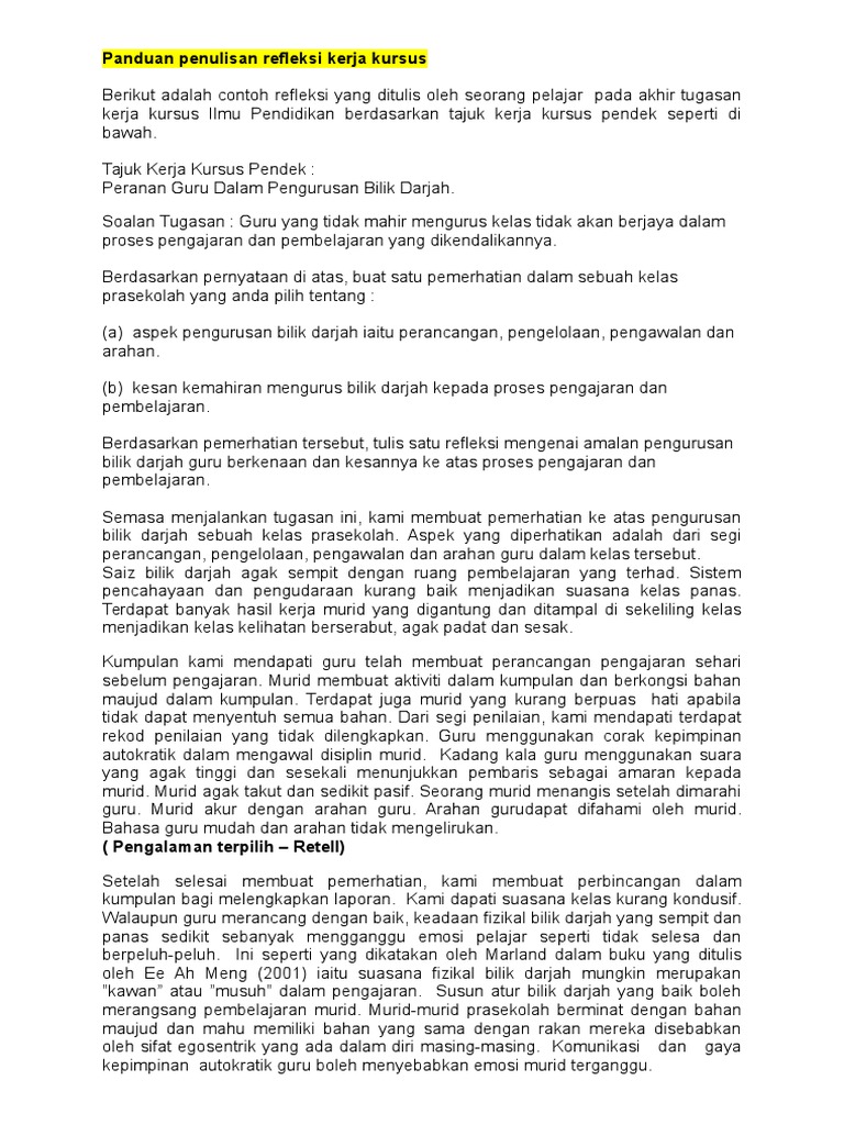 Contoh Refleksi Docx Pengenalan Assalamualaikum Alhamdulillah Akhirnya Saya Berjaya Menyiapkan Refleksi Individu Ini Terima Kasih Kepada Yang Course Hero
